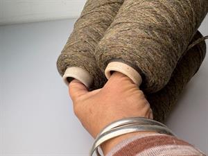 Vi gør opmærksom på at en del af trådene er vundet på genbrugscones - så der kan stå noget andet inden i pappet.