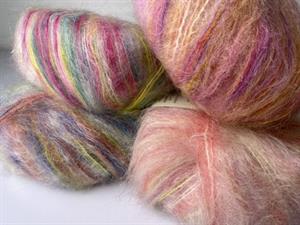 Kompositionen er en klassisk kid mohair med uld, der giver det karakteristiske langhårede udtryk. Garnet er let og varmt og egner sig særligt godt til store sweatre og kjoler da det holder et let og luftigt udtryk selv i et stort arbejde. Denne chunky mohair har fine farveforløb, der giver et håndfarvet udtryk til dit arbejde. Kombiner den med en gennemfarvet følgetråd, strik den alene eller sammen med flere, for dit helt eget udtryk.