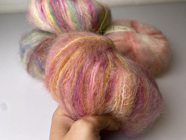 Kompositionen er en klassisk kid mohair med uld, der giver det karakteristiske langhårede udtryk. Garnet er let og varmt og egner sig særligt godt til store sweatre og kjoler da det holder et let og luftigt udtryk selv i et stort arbejde. Denne chunky mohair har fine farveforløb, der giver et håndfarvet udtryk til dit arbejde. Kombiner den med en gennemfarvet følgetråd, strik den alene eller sammen med flere, for dit helt eget udtryk.