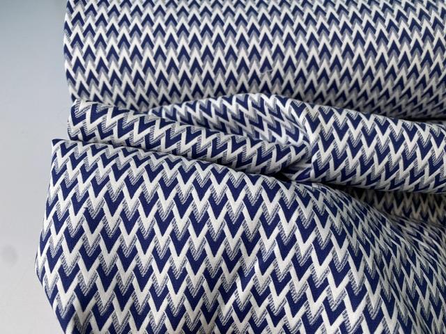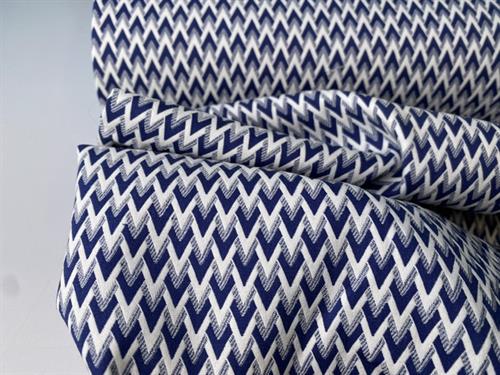 Bengalin lignende buksestof - mini zig zag i blå og hvid