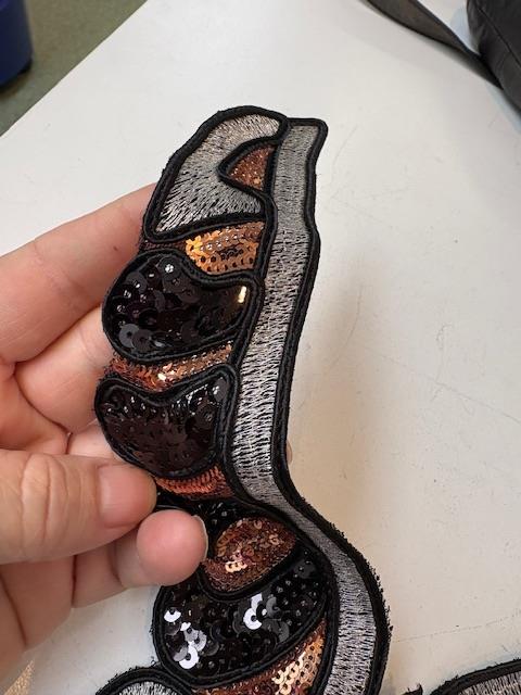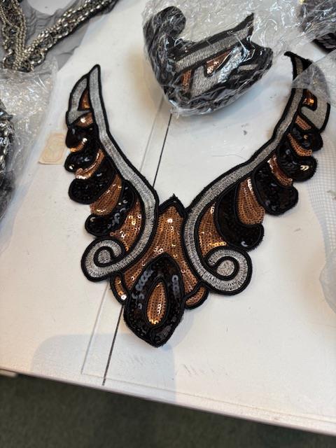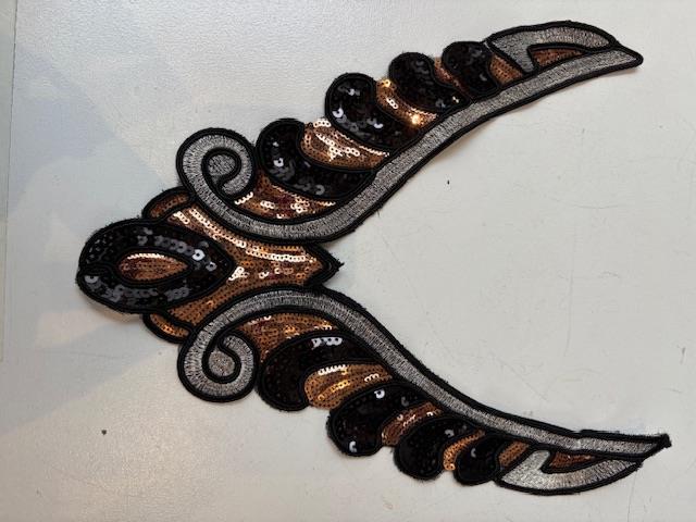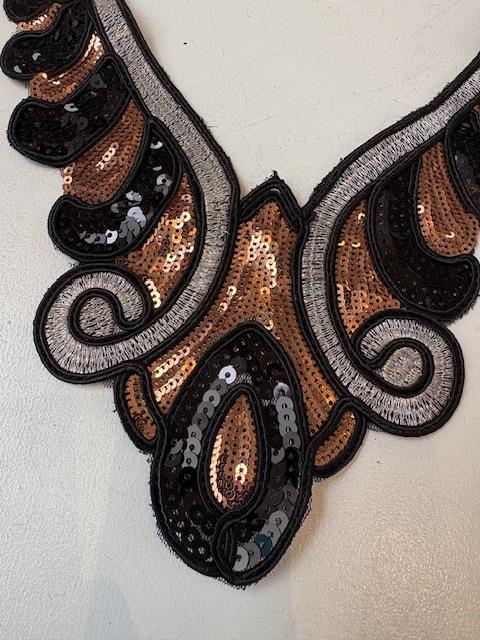 Besætning - sort bund med sølv perler og pailetter, ca 24x26 cm