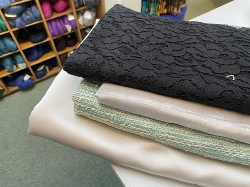 Bomuldsjersey, isoli, fastvævet viscose, hør, poplin, fastvævet bomuld, fleece, gauze og fløjl