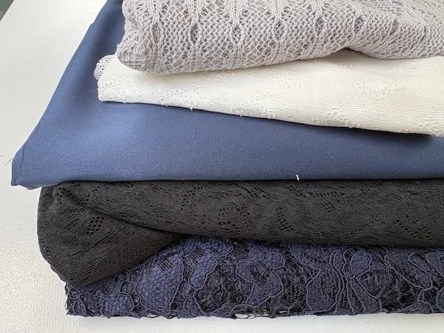Bomuldsjersey, isoli, fastvævet viscose, hør, poplin, fastvævet bomuld, fleece, gauze og fløjl