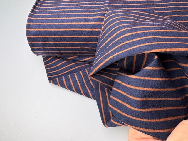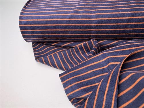Børstet bomuldsjersey - tawny og marineblå