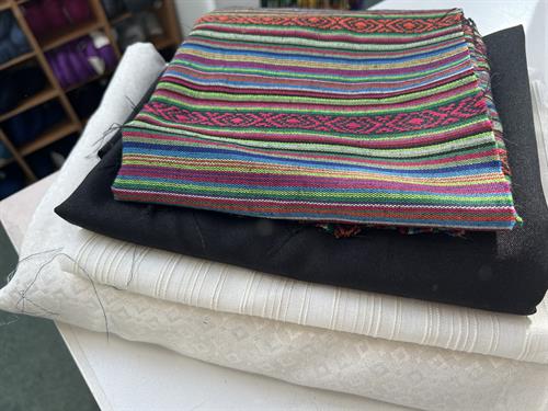 Bomuldsjersey, isoli, fastvævet viscose, hør, poplin, fastvævet bomuld, fleece, gauze og fløjl