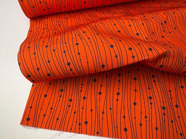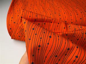 Bomuld/polyester - lækker orange bund med grafisk blåt print
