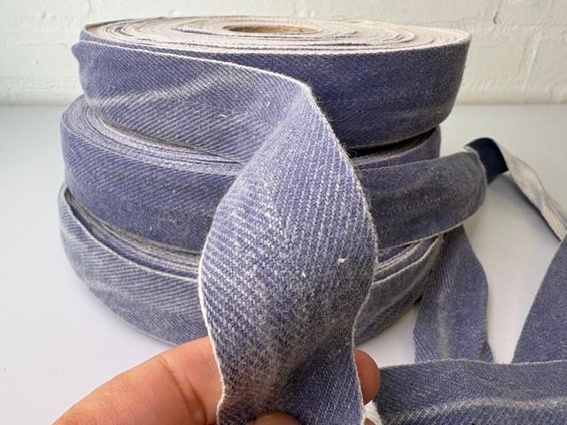 Bomulds bændel - slidt jeans look, 38 mm