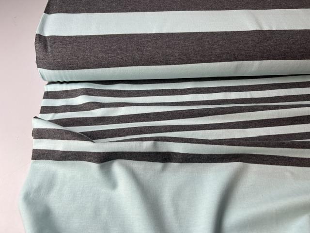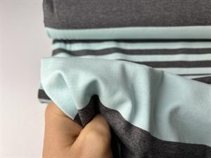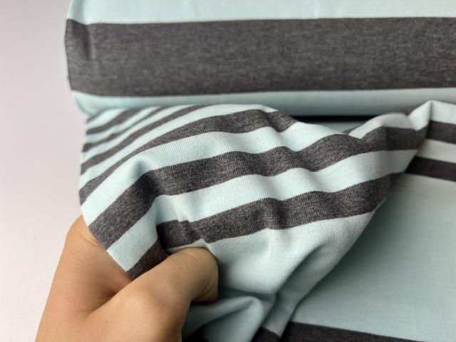Bomuldsjersey - brede og smalle striber i lyseblå og mørkegrå