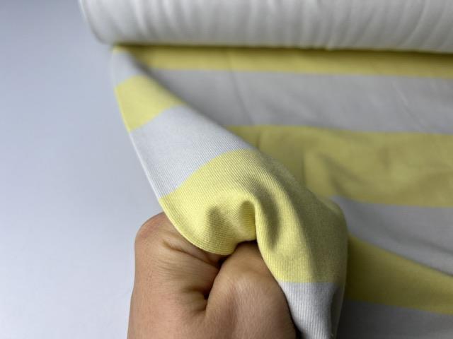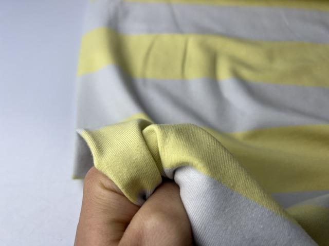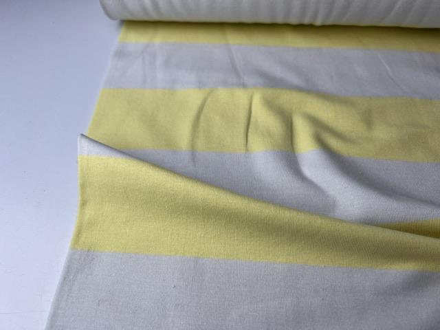 Bomuldsjersey - brede striber i pastel gul og lysegrå