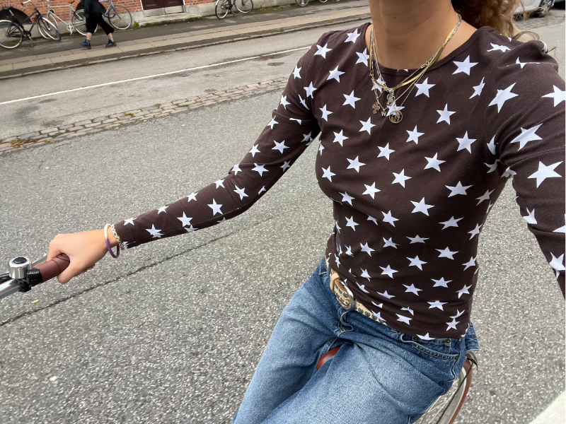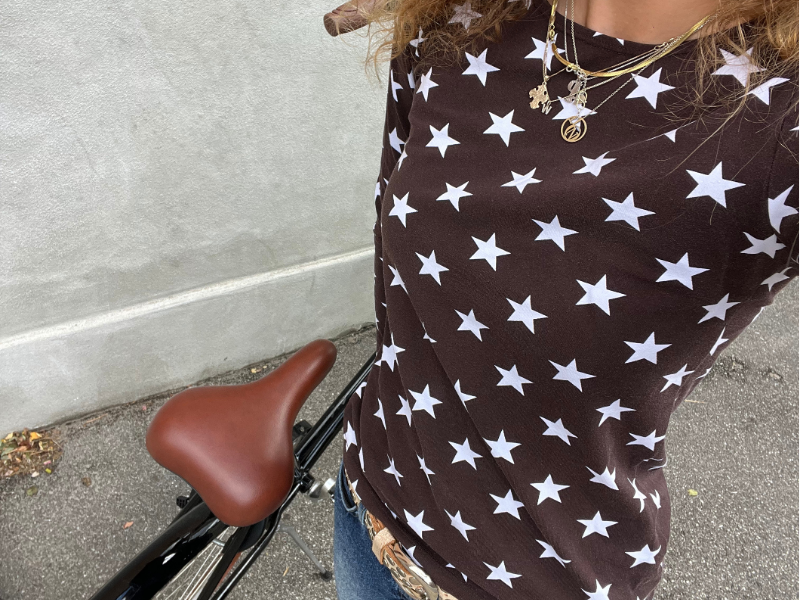 Bomuldsjersey - brun med store hvide stjerner