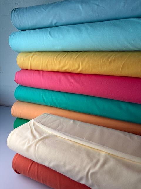 Bomuldsjersey er elsket for sin blødhed, holdbarhed og åndbarhed. Stoffet er naturligt strækbart, da det er strikket, men har typisk også en smule elastan/lycra, hvilket sikrer en god strækbarhed. Bomuldsjersey er utroligt behageligt at bære og bruges af alle aldre. Det findes både i ensfarvet, meleret, stribet, mønstret og meget mere. Det er en sand favorit og er desuden nemt at arbejde med.