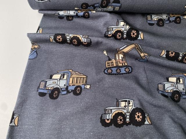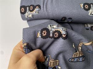 Bomuldsjersey - fine biler og maskiner på støvet blå bund