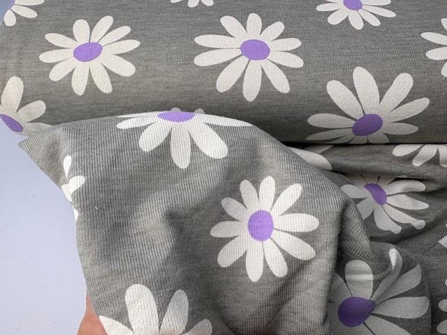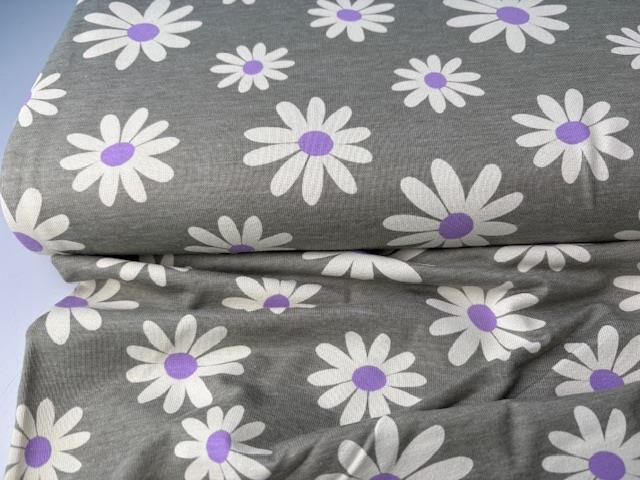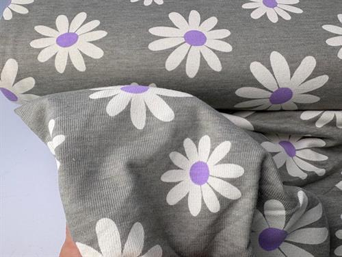 Bomuldsjersey - fine blomster på meleret bund