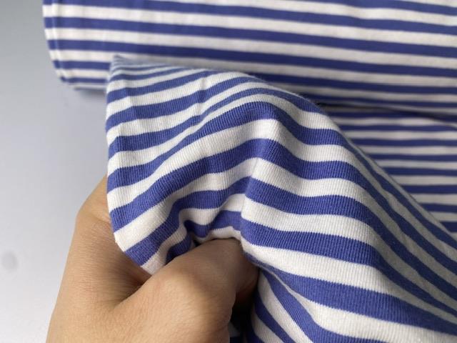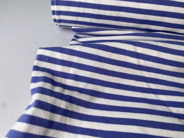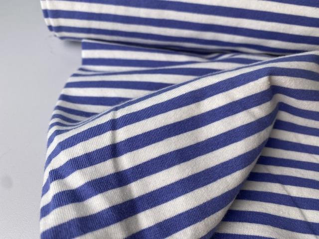 Bomuldsjersey - flotte smalle striber i jeansblå / offwhite