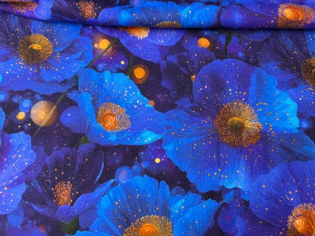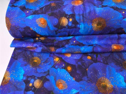 Bomuldsjersey - glowing blue flowers