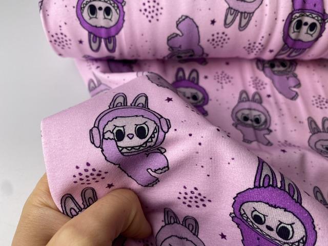 Bomuldsjersey - Labubu bamser i lilla toner