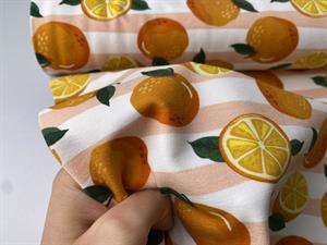 Bomuldsjersey er elsket for sin blødhed, holdbarhed og åndbarhed. Stoffet er naturligt strækbart, da det er strikket, men har typisk også en smule elastan/lycra, hvilket sikrer en god strækbarhed. Bomuldsjersey er utroligt behageligt at bære og bruges af alle aldre. Det findes både i ensfarvet, meleret, stribet, mønstret og meget mere. Det er en sand favorit og er desuden nemt at arbejde med.