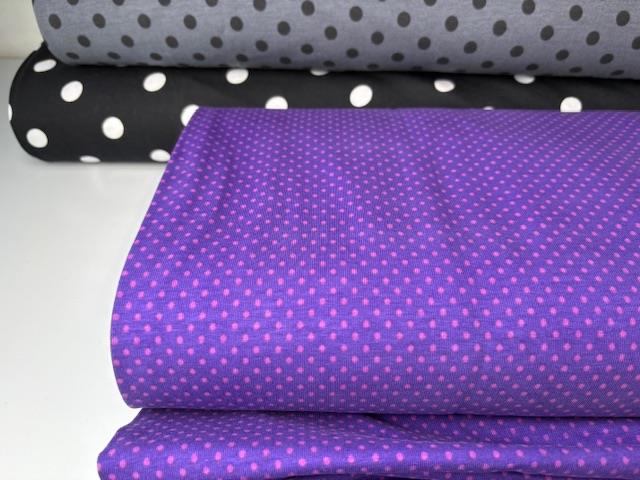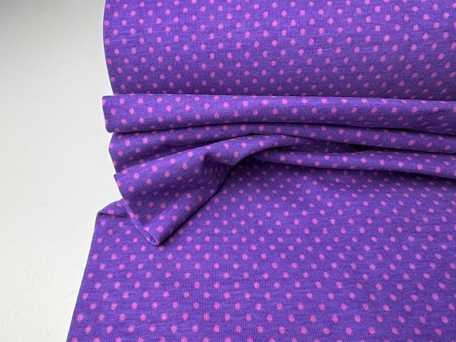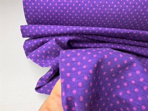 Bomuldsjersey - lidt stum, lilla med pink prikker
