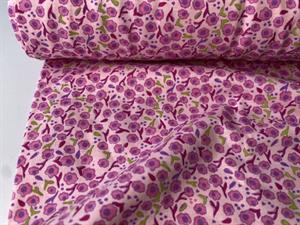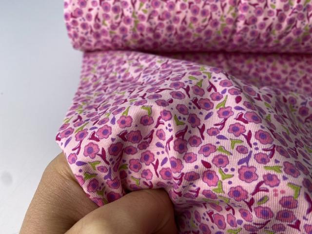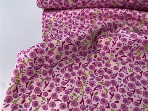 Bomuldsjersey - lidt stum, lyserød med søde blomster