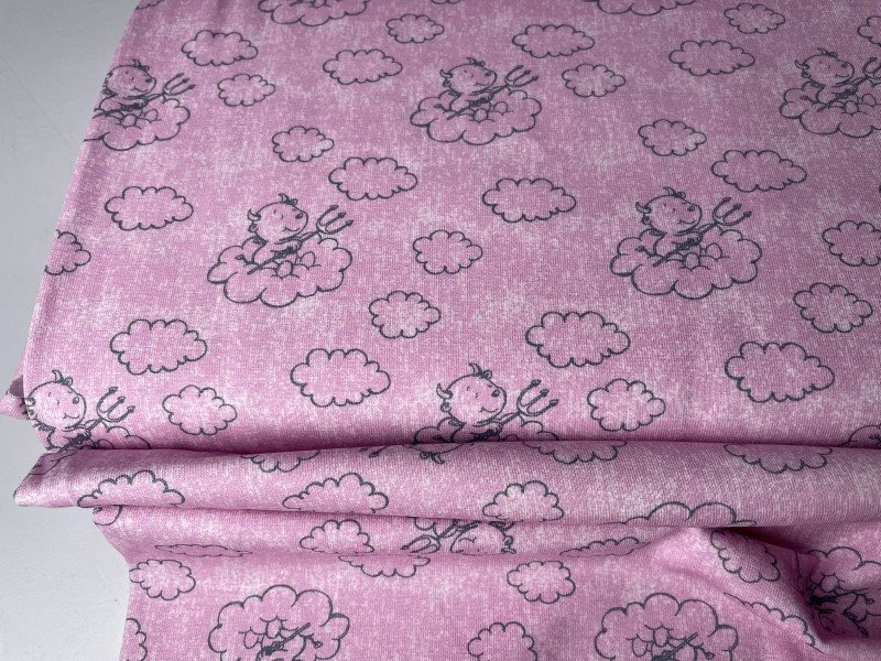 Bomuldsjersey - lyserød meleret med sød lille djævel