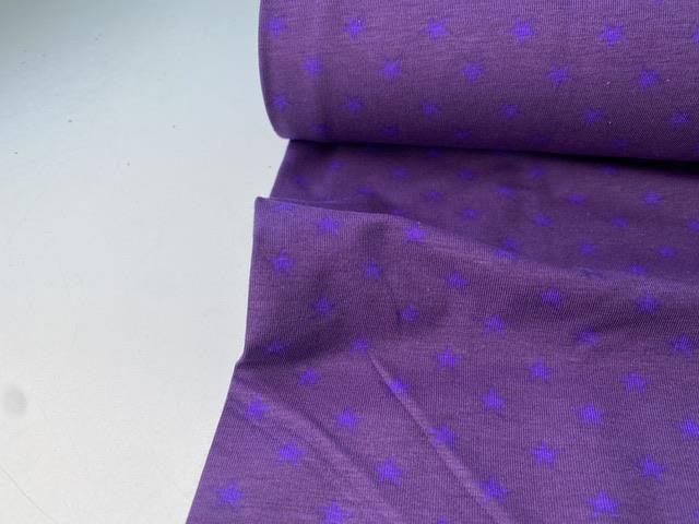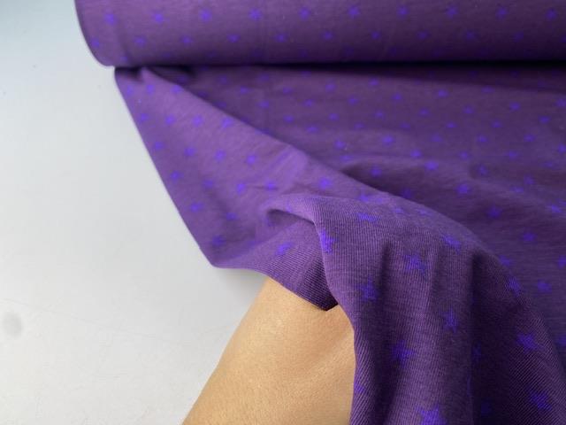 Bomuldsjersey - mørk lilla med fine stjerner