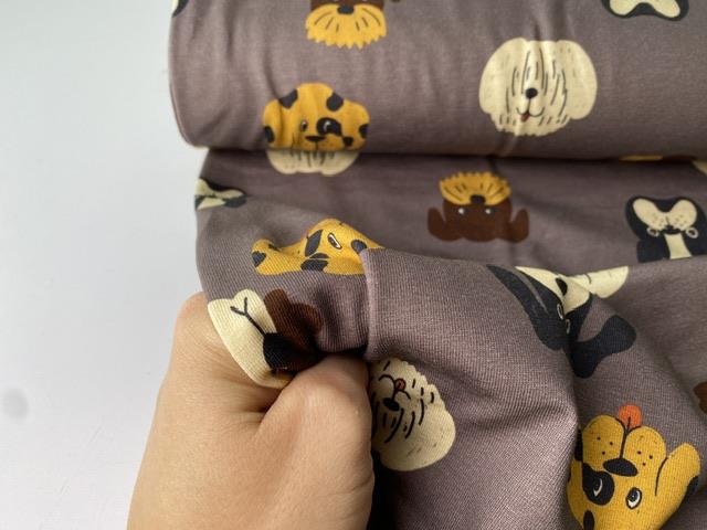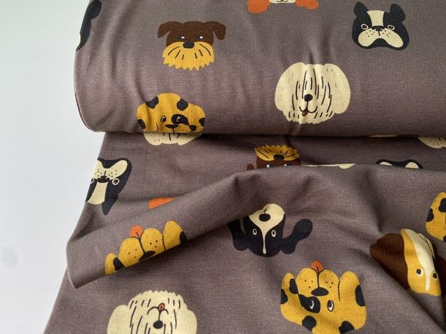 Bomuldsjersey - nuttede hunde på gråbrun bund