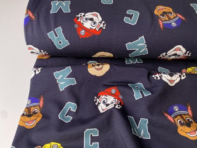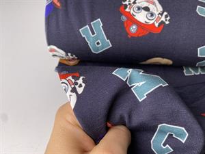 Bomuldsjersey - Paw Patrol og bogstaver på blå bund