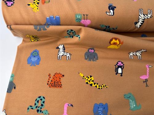 Bomuldsjersey - safaridyr på camel bund