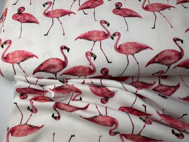 Bomuldsjersey - skønne flamingoer
