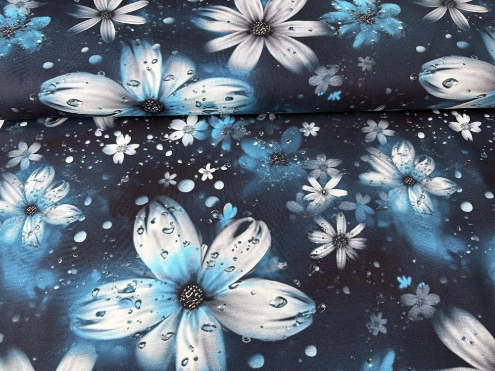 Bomuldsjersey - smukke blå blomster efter regnen, gots