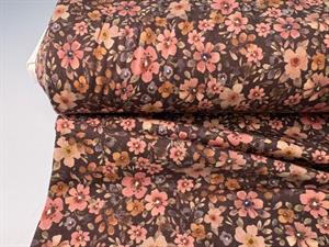 Bomuldsjersey - smukke blomster i rosa toner