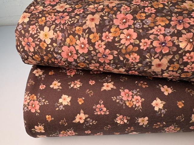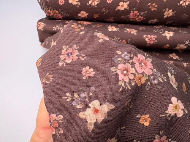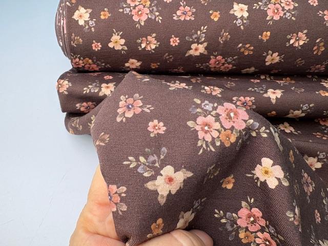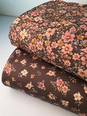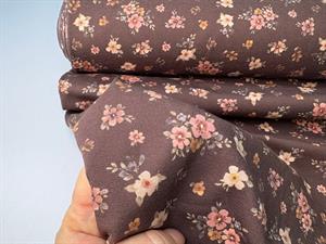 Bomuldsjersey - smukke blomster på brun bund