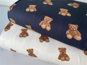 Bomuldsjersey - søde teddy bear på offwhite bund, gots