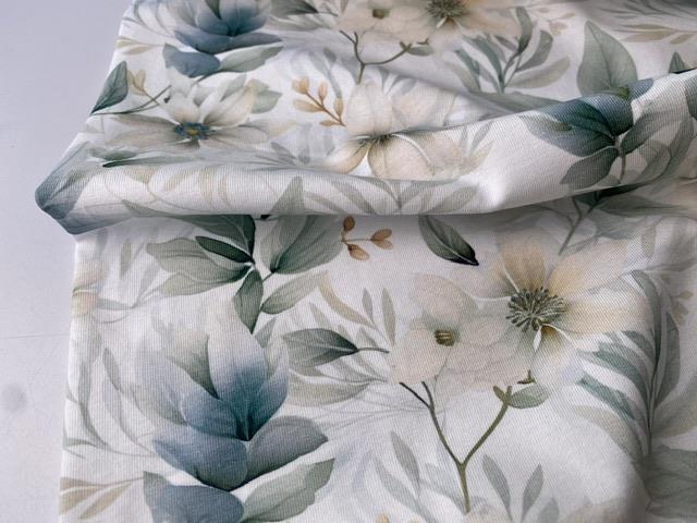 Bomuldsjersey - yndige blomster i blide toner