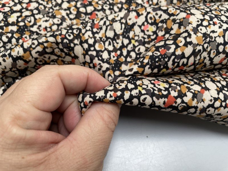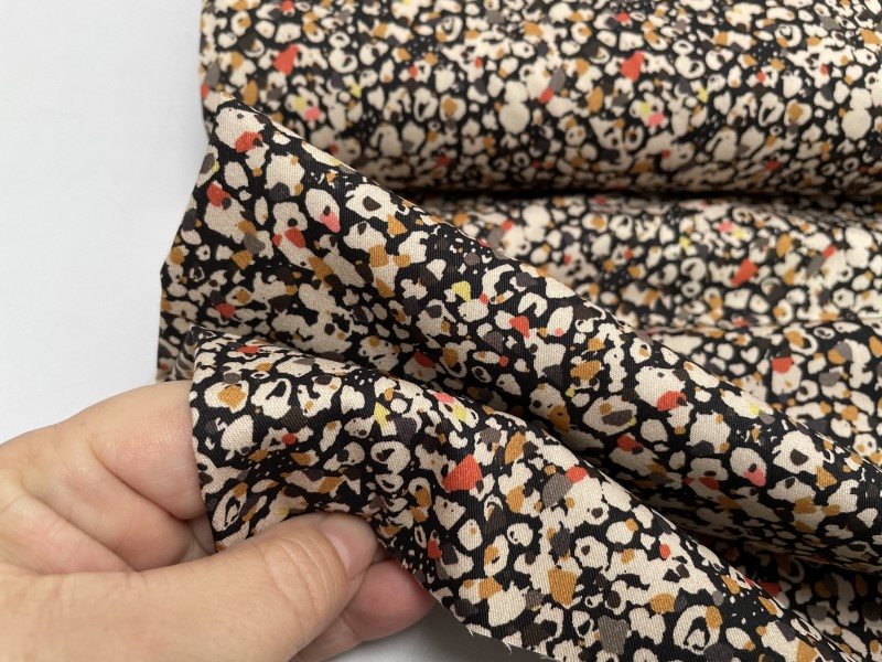 Bomuldssatin - små mønstret i varme toner
