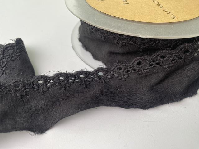 Yndigt broderi anglaise bånd i sort.