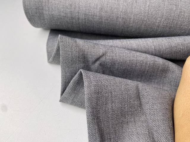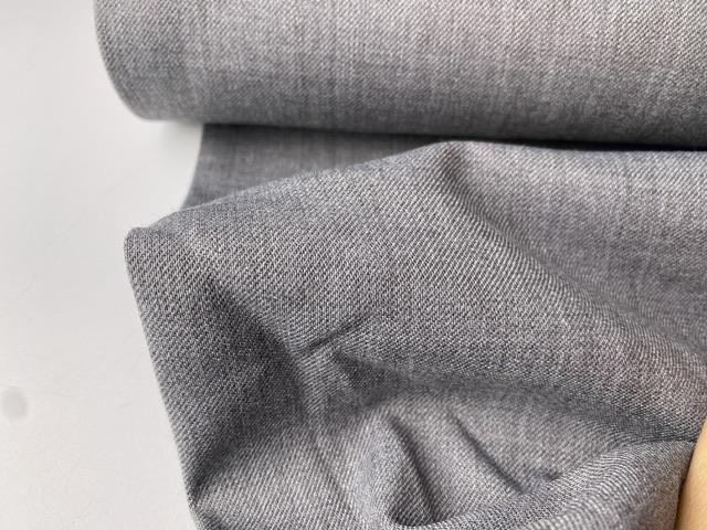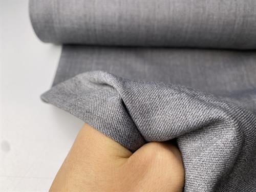 Drønlækkert buksestof i en smuk meleret mellemgrå. Stoffet er lidt fleksibelt og helt fantastisk til beklædning.