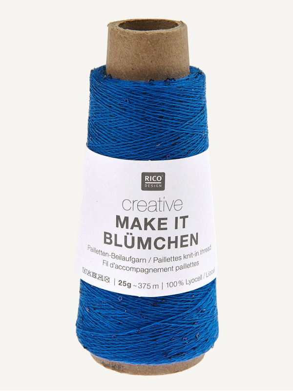 Make It Blümchen fra Rico Design er et flot effektgarn, som kan bruges til kreative projekter. Garnet er et smukt pailletgarn, hvor pailletterne er små og blomsterformede. Garnet består af 100% lyocell og har en løbelængde på 375 meter pr. 25 gram. Det er perfekt som følgetråd i strikke- eller hækleprojekter, hvor det giver et elegant og smukt udseende.