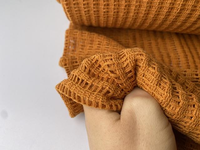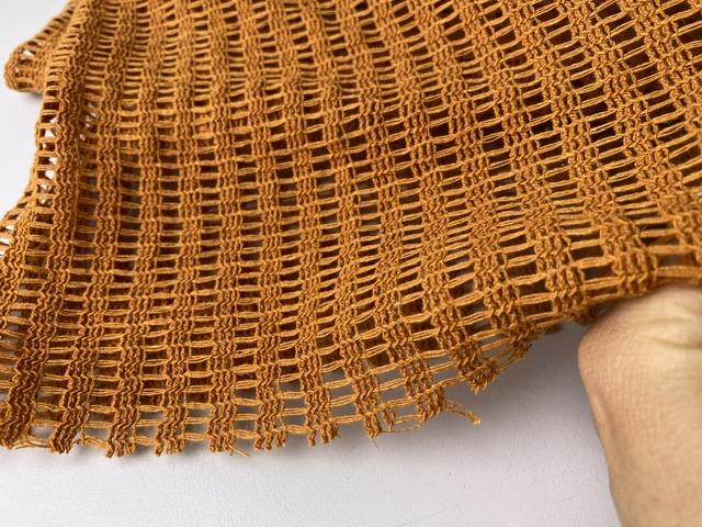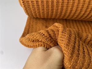 Lækkert strikket netstof med flot hæklet look i orangebrun.