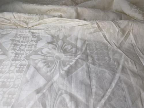 Damask i fantastisk kvalitet og 100% bomuld er netop landet i butikken. Fin selskabelig vævet jacquardkvalitet med et elegant udtryk. Stoffet er egentlig dekostof og derfor helt ideelt til duge, gardiner, puder, dækservietter, tasker og al anden boligindretning, men kan også bruges til veste, jakker, bukser, kjoler og nederdele.