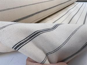 Drønlækker deko canvas fra en ny serie af klassiske og smukke metervarer til boligen. Stoffet forener et smukt, nordisk udtryk med en tidløs æstetik, hvor de rolige naturtoner og de fine striber skaber et harmonisk og stilrent look. Den kraftige canvasvævning giver stoffet en skøn struktur og en lækker, autentisk fornemmelse, som både kan ses og mærkes. Den ekstra brede kvalitet på 280 cm giver dig mere stof pr. meter og færre samlinger, hvis du har et større projekt.