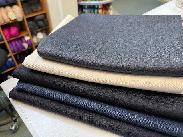 Bomuldsjersey, isoli, fastvævet viscose, hør, poplin, fastvævet bomuld, fleece, gauze og fløjl