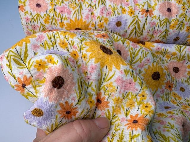 Det korte svar er nærmest alt. De fleste vil nok mene noget til børn eller stofbleer. Men her syr vi kjoler til os selv, shorts i alle størrelser, skjorter til damer eller herrer, løse lette bukser, etage nederdele, sengetæpper, morgenkåber, håndklæder og alt muligt andet. Det er en af vores favoritter.