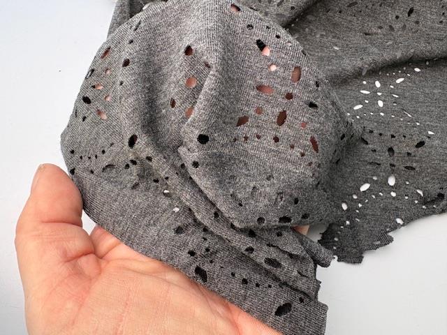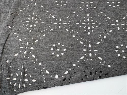 Effektjersey - lazer cut / hulmønstret jersey i gråmeleret