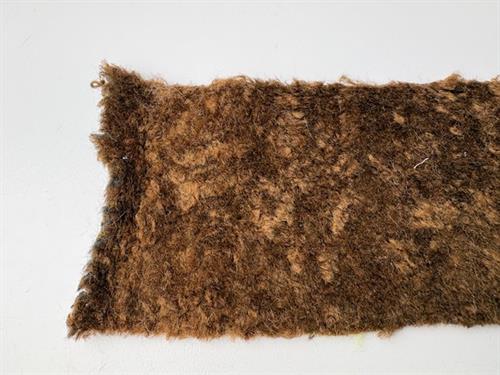 Fake pels i en flot mørk brun. Den er blød og rar at røre ved. Den er strikket og kan derfor give sig.
