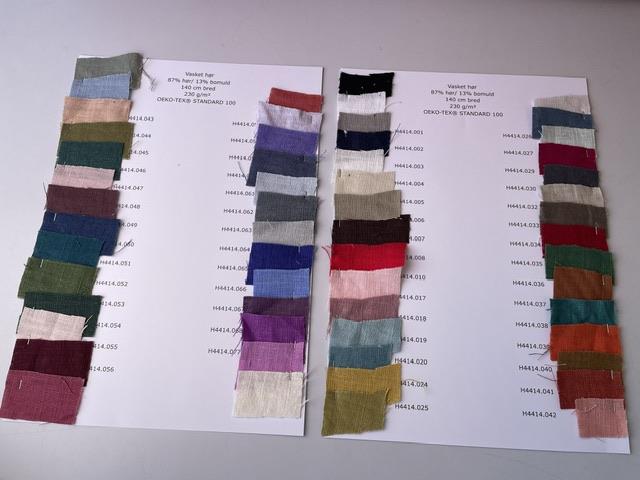 Farvekort på fastvævet hør med 57 forskellige farver.