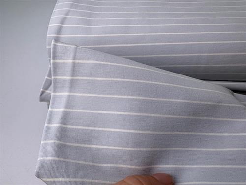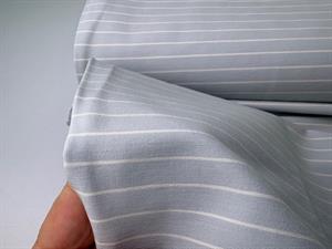 Fastvævet bengalin med stræk - lækre smalle striber på lyseblå bund