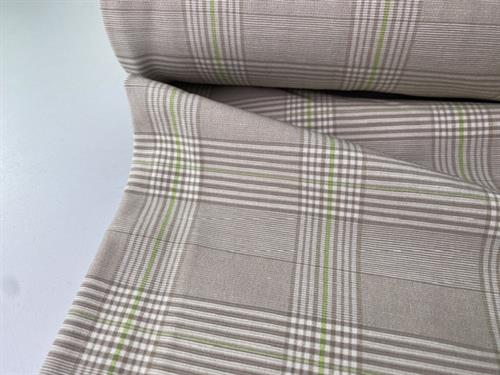 Fastvævet bengalin med stræk - lækre tern på beige bund