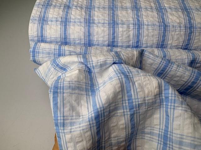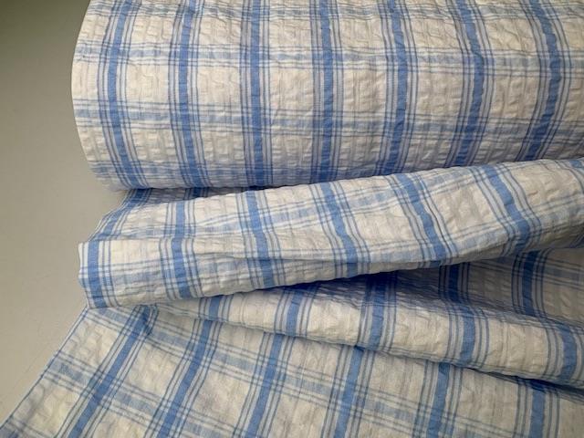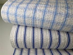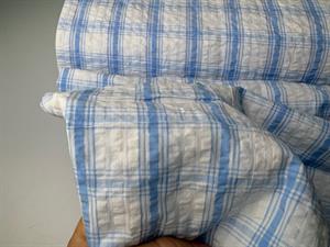 Fastvævet bomuld - bæk og bølge i hvid med blå tern