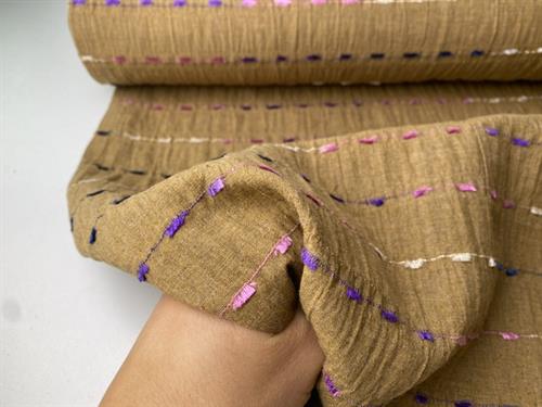 Skøn fastvævet bomuldsblanding i en lækker kvalitet. Stoffet har det smukkeste udtryk med sin skønne struktur. Det er ideelt til beklædning og især velegnet til forår- og sommergarderoben.